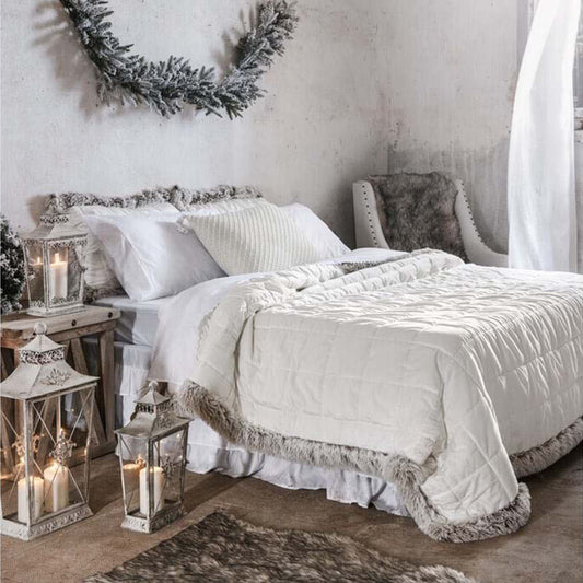Piumone Set trapunta e copriguanciali con ecopelliccia