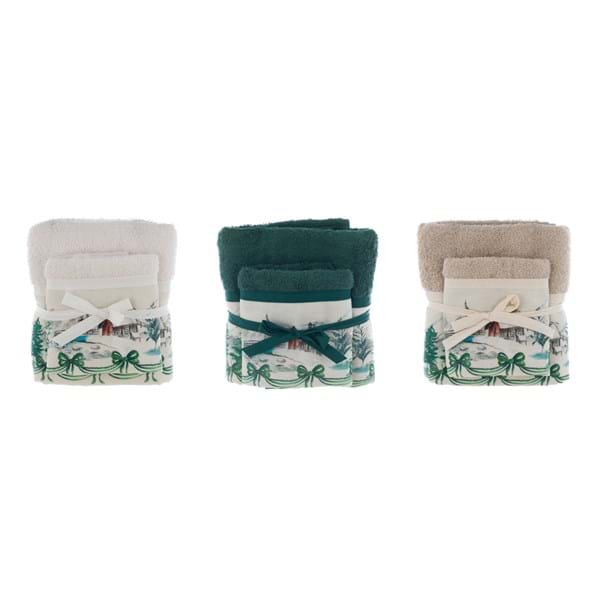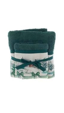 Coppia di asciugamani in spugna con fascia decorativa invernale