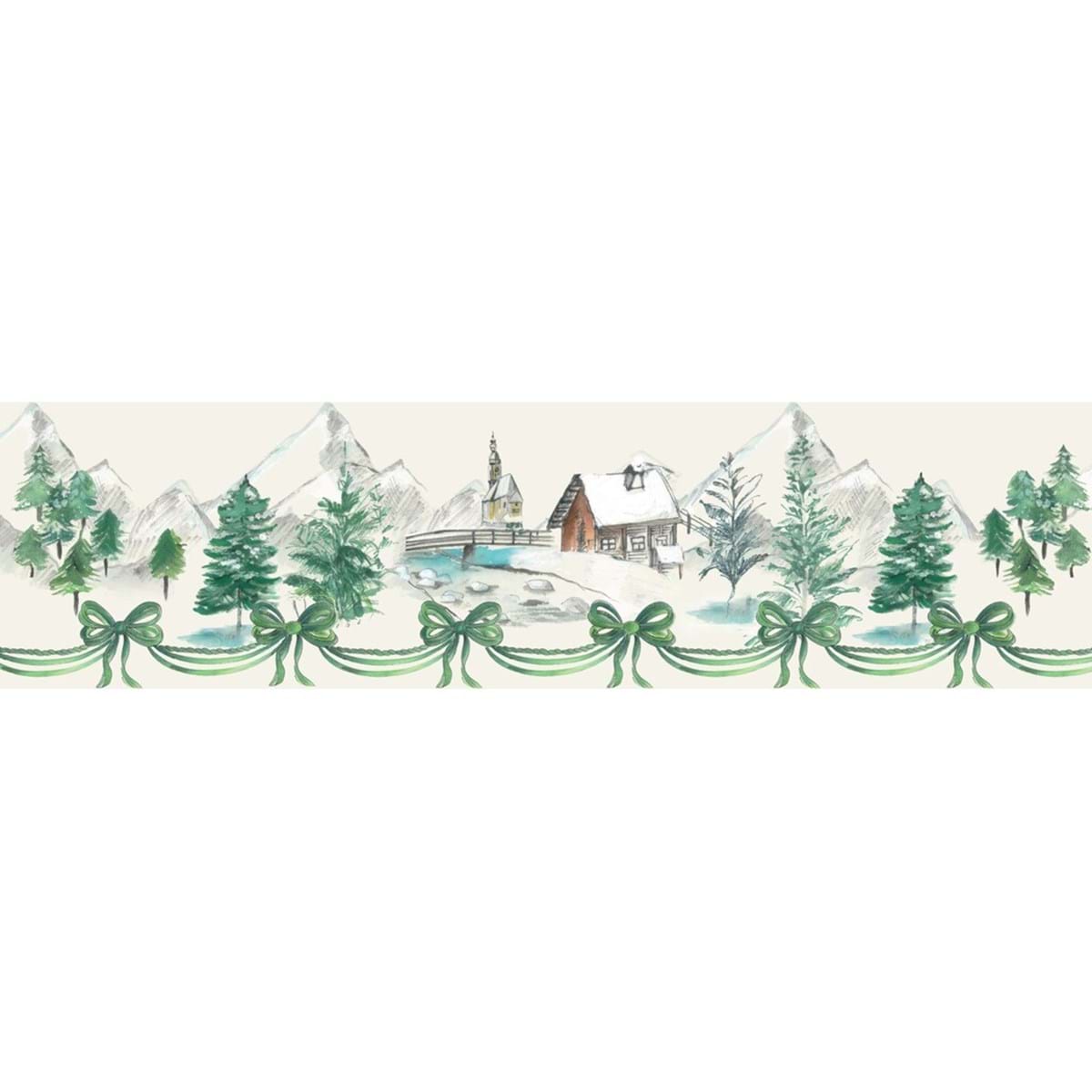 Coppia di asciugamani in spugna cotone 100% con fascia decorativa a tema invernale: paesaggio suggestivo innevato di montagna con fiocchi a ghirlanda. Di Blanc Mariclò della collazione “GRAN PARADISO”.