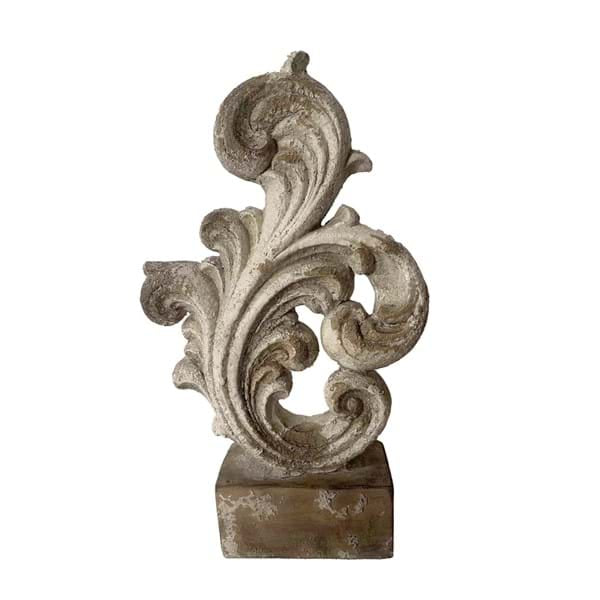 Decoro in resina con piedistallo effetto pietra a forma di foglia d’acanto, di Blanc Mariclò collezione “ANTIQUA DOMUS”.