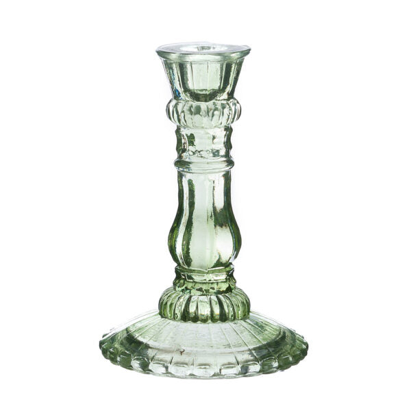 Porta candela in vetro verde di Blanc Mariclò della collezione “ Vent du Sud”;