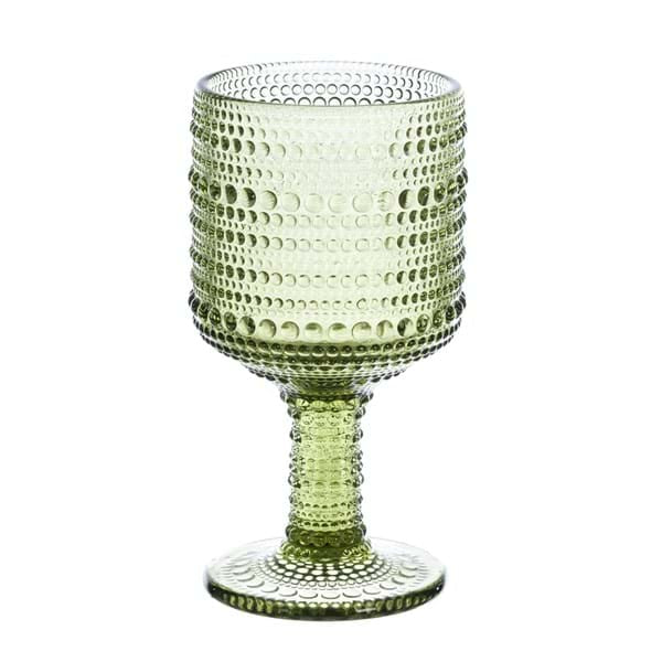 Set servito di 6 calici da vino di Blanc mariclò, collezione “OLIVA”, in vetro verde con rilievi geometrici.