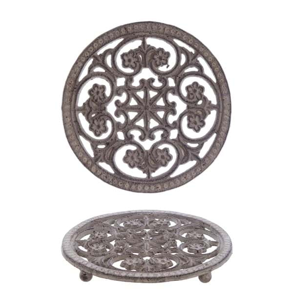 Sotto pentola rotondo in metallo scuro con disegno mattonella, di Blanc Mariclò della collezione “ DULCIS MEMORIA”.